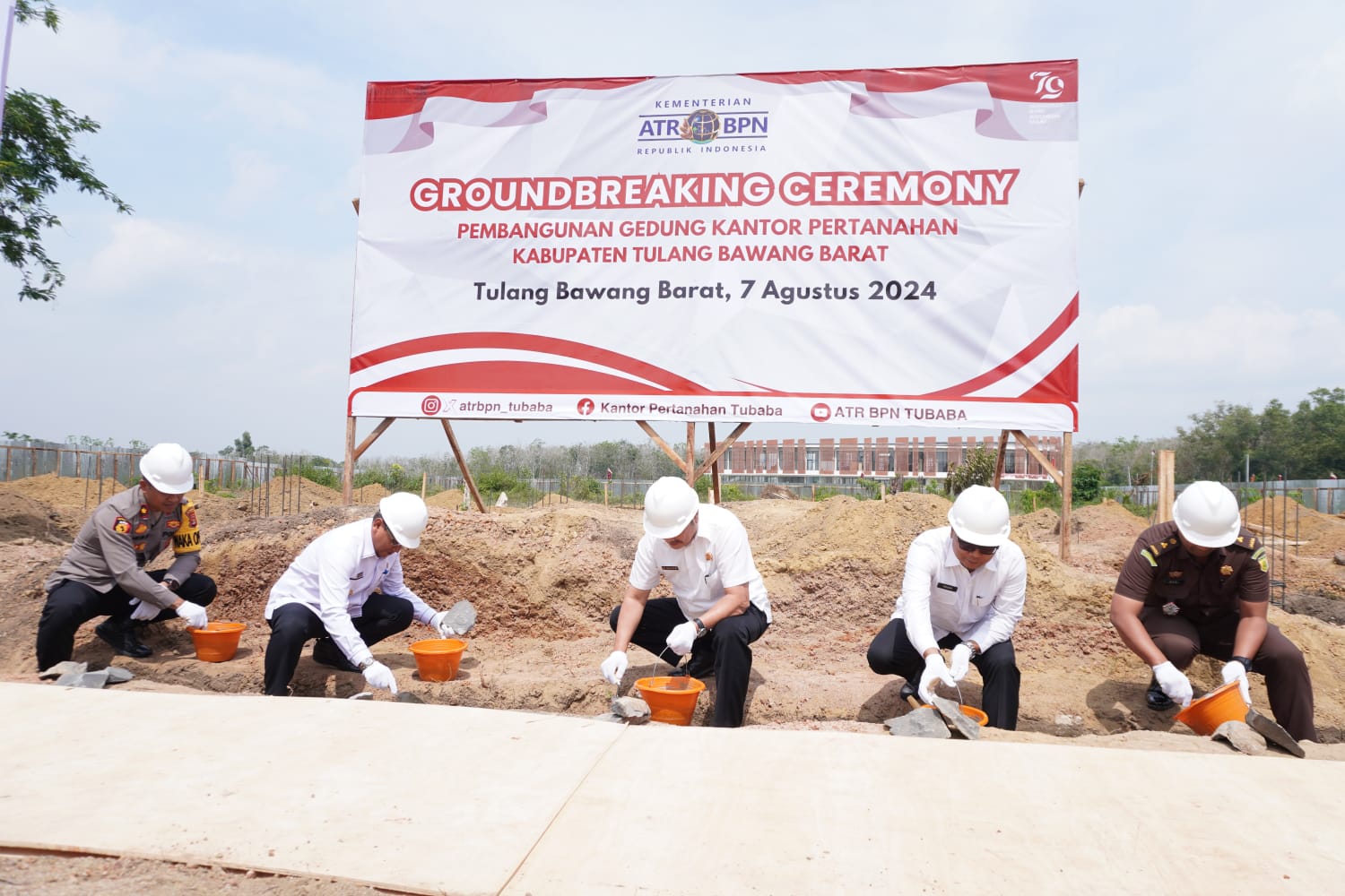 Acara dilanjutkan dengan prosesi peletakan batu pertama secara simbolis dilakukan secara serentak oleh Kepala Kantor Wilayah BPN Provinsi Lampung, Staf Ahli Bupati Bid. Pemerintahan, Hukum dan Politik Tubaba, Kepala Kantor Pertanahan Kabupaten Tubaba, WaKapolres Tubaba dan Kasi Datun Kejari Tubaba.