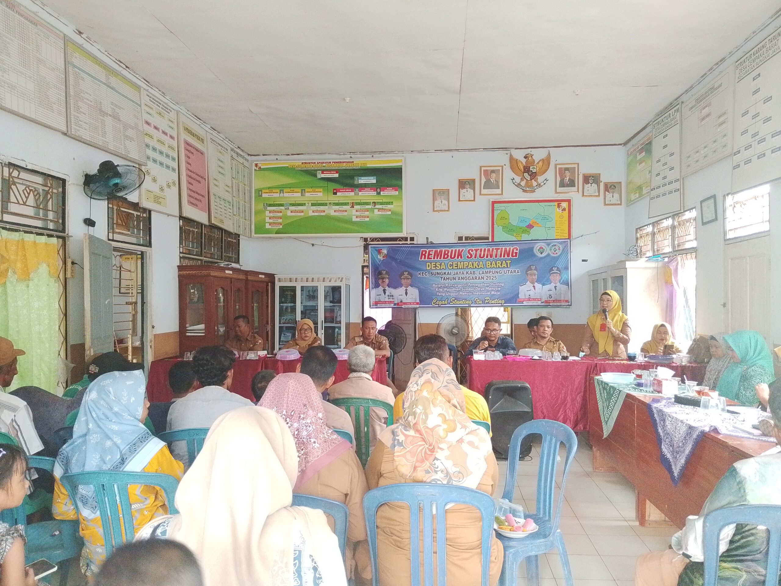 Lampung Utara, Elvanonews.com — Kepala Puskesmas Sungkai Jaya, Ria Abkonita, S.ST., M.Kes, menghadiri kegiatan Rembuk Stunting yang digelar di Desa Cempaka Barat. Dalam kegiatan tersebut, ia juga bertindak sebagai narasumber utama dengan menyampaikan pentingnya peran orang tua dalam upaya pencegahan stunting pada anak. Senin, (13/10/25).